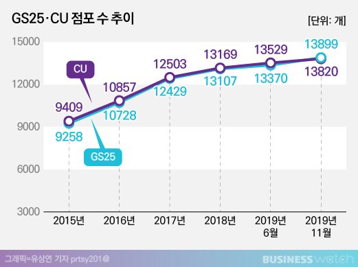 しかし、2013年にCUの加盟店で事件[6]が起きると、CUの加盟店増加が停滞。以降GS25が積極的に店舗を拡大して追い上げていく。