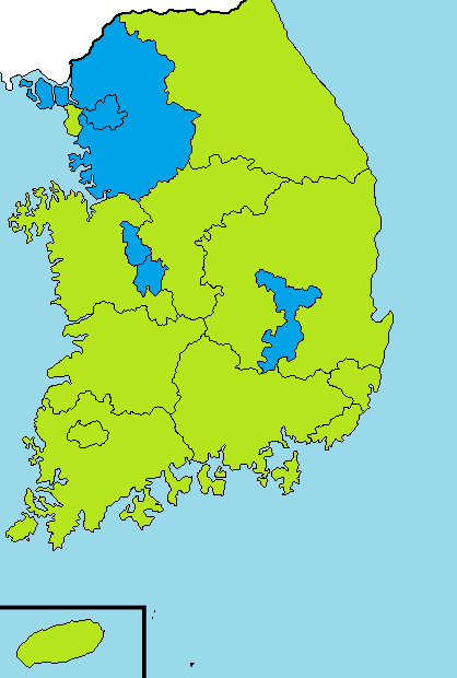 (画像出元はhttps://commons.wikimedia.org/wiki/File:Provinces_of_South_Korea.svg(User:Ksiom、CC BY-SA 3.0 非移植)です。この画像の転用(白地図化含む)についてはは同ライセンスで利用可能とします。)